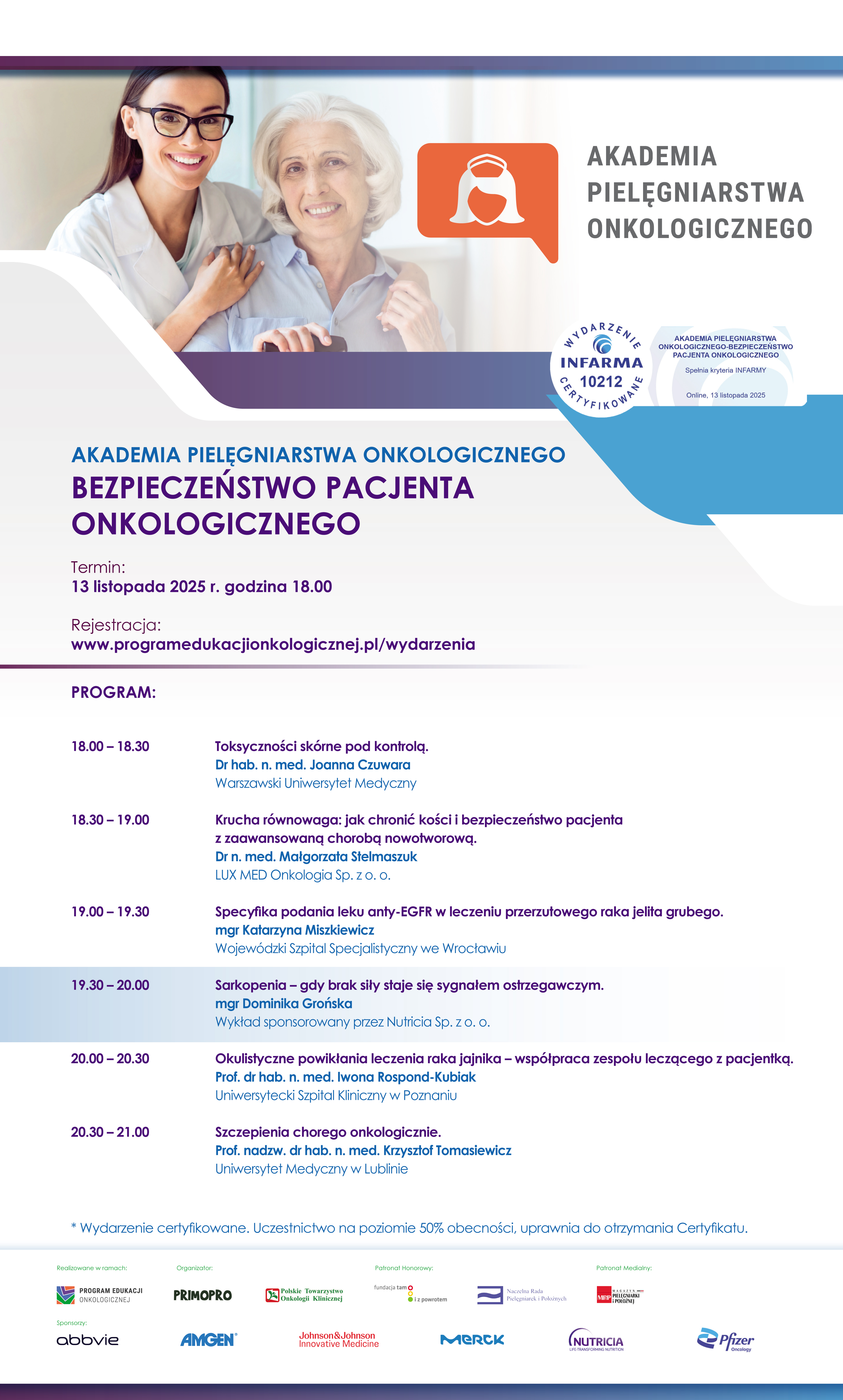 Przypominamy, że zapisy na wydarzenie są możliwe po wcześniejszym zarejestrowaniu się na Portalu Edukacyjnym www.programedukacjionkologicznej.pl